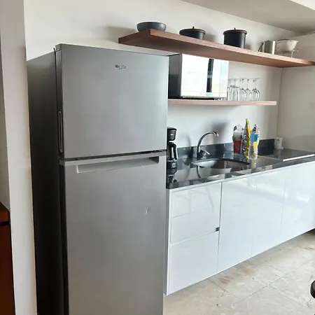 Een ingerichte keuken met een koelkast, een oven en keukengerei is beschikbaar als onderdeel van de zelfvoorzienende voorzieningen van de accommodatie. De luchthaven Playa del Carmen binnen 5 minuten rijden van het appartement.